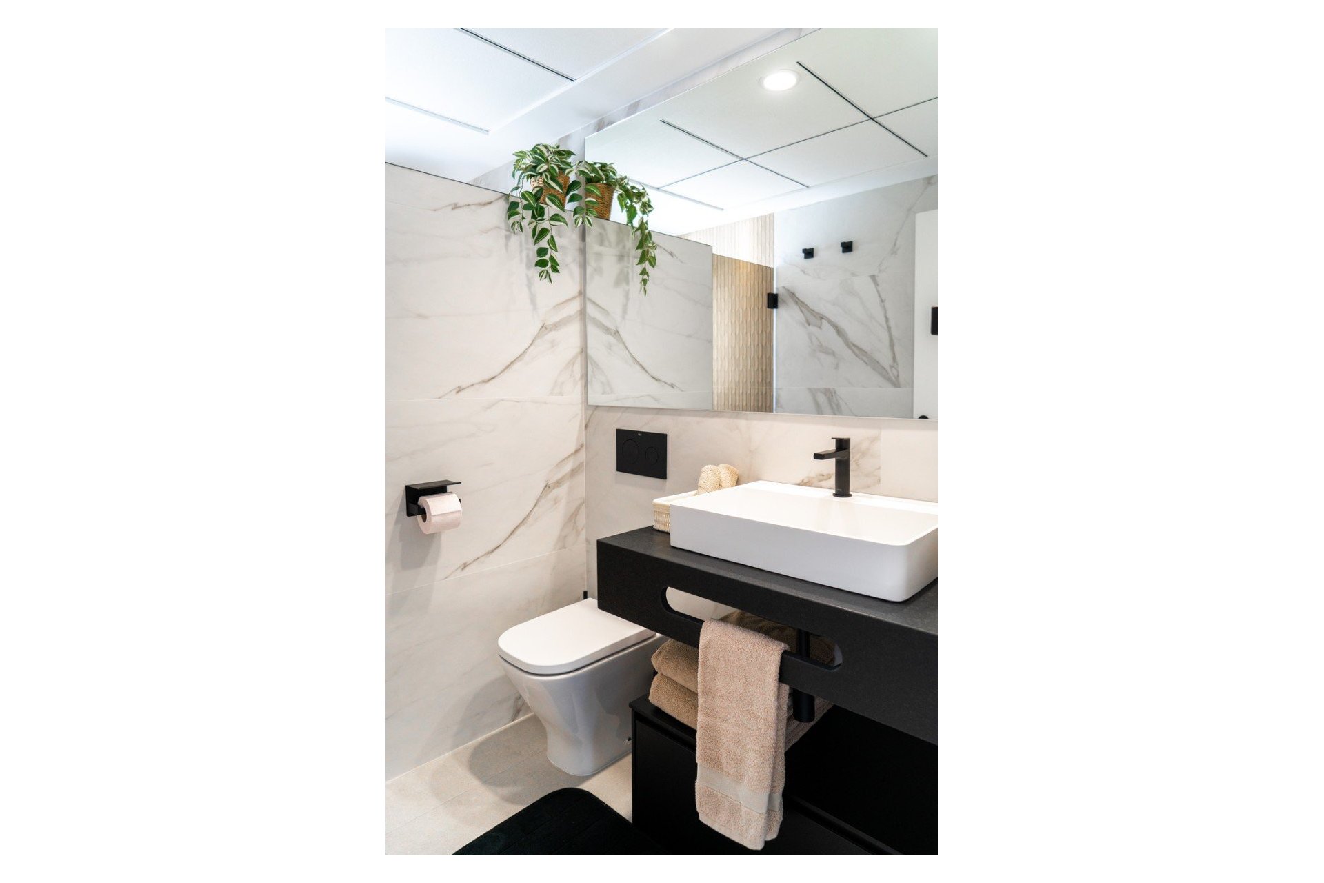 El interior destaca por su estilo elegante y funcional: una cocina italiana de diseño totalmente equipada con electrodomésticos, tres dormitorios y tres baños completos (uno en suite), además de aire acondicionado por conductos y calefacción de calor azul en todas las estancias. Los materiales de alta gama, como las ventanas Schüco y la puerta de seguridad con apertura mediante código, garantizan la máxima calidad y confort.