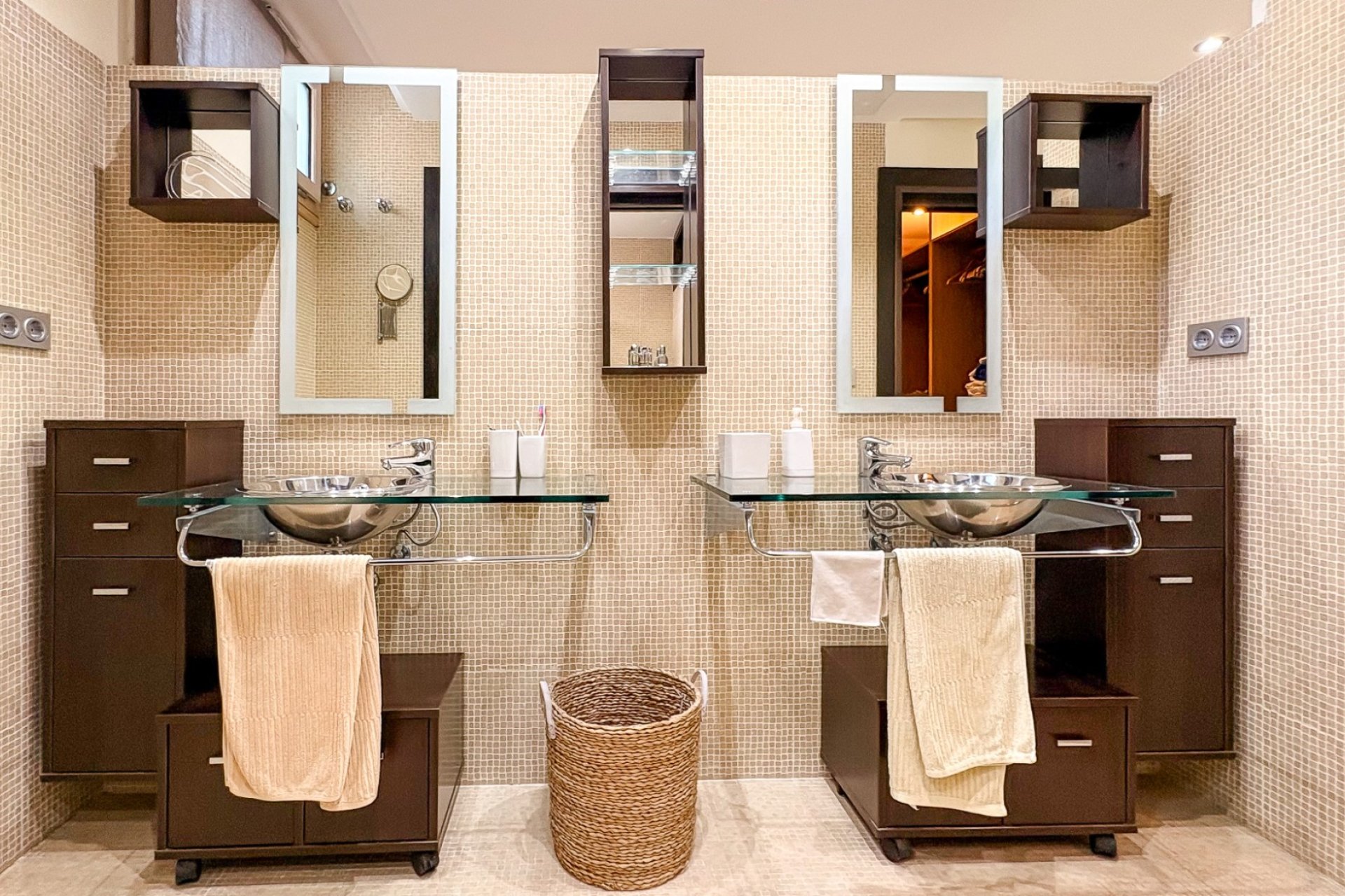 En el sótano, encontramos una zona completamente habitable con un amplio salón con cocina abierta, una habitación principal con baño completo y vestidor en suite, además de dos dormitorios adicionales conectados entre sí mediante un baño compartido. Esta planta se completa con lavadero y acceso directo al garaje privado, aportando comodidad y funcionalidad.