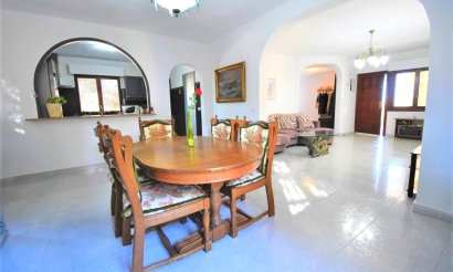 This East Facing, Six Bedroom Detached Villa in the area of Las Filipinas, Villamartin; a popular residential area just a five minute walk to cafe bars, restaurants, small convenience shop; major supermarket 2 minutes by car, along with “La Fuente” commercial centre and 2 golf courses; 10—15 minutes to the coast where you have a choice of beaches and an abundance of amenities, including La Zenia Boulevard shopping centre. A character villa on an 800m2 private mature plot, comprising: Curved covered terrace offering ample dining space which then opens out to a great terraced area which is partly covered; entering the property into a curved spacious entrance hall, which has stairs leading up to the first floor; lounge area with feature fireplace and wide arch leading to another living/dining area; American style fitted kitchen; utility room; cloakroom; The lower living area of this villa has a lounge/sitting area; four double bedrooms, master with sliding doors out to the garden; one single bedroom; two further bathrooms; large double bedroom with en suite bathroom on the first floor. The villa is surrounded by the mature grounds it stands in, including an 8x4 private pool with plenty of terracing around, lots of mature tall trees and driveway access, BBQ area. The property also benefits from a large storage area on the ground floor and central heating. A truly great family home.