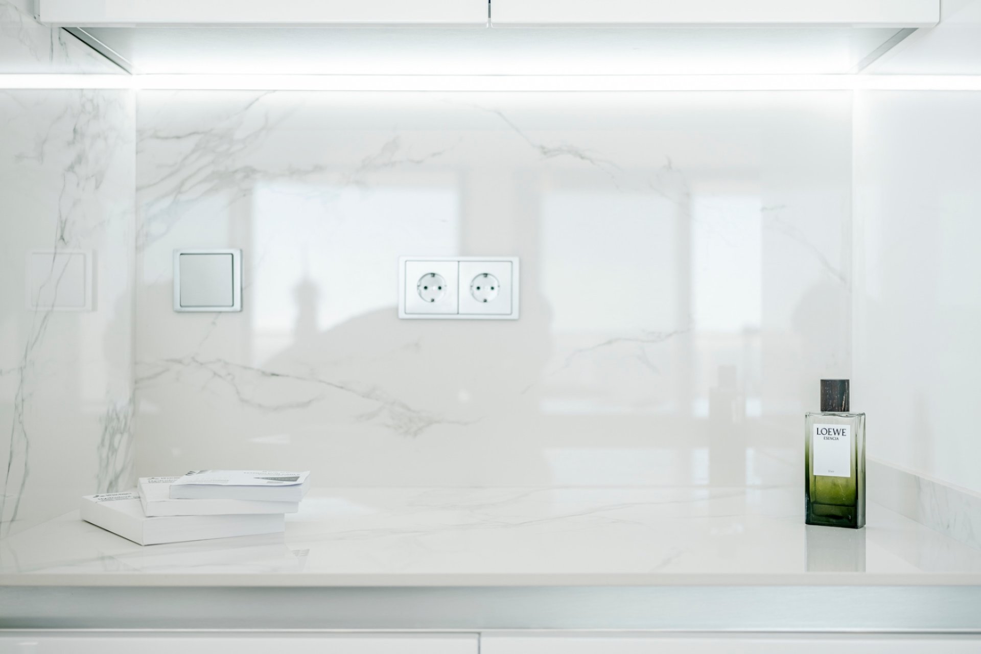 The spacious living area is bathed in natural light, featuring an open-concept kitchen equipped with high-end Samsung smart appliances and exclusive Porcelanosa finishes. With its seamless design and premium materials, this space is perfect for both everyday living and entertaining.