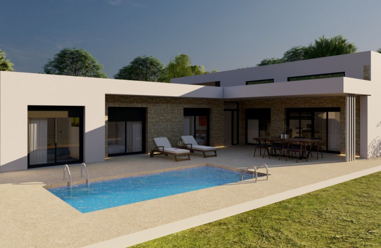 Introducing a stunning, modern independent villa, to be built on expansive rustic plots just outside the charming town of Pinoso. This single-level villa will be set on a nearly flat, 10,061 m² plot, fully fenced and adorned with olive trees for easy maintenance. The property offers breathtaking panoramic views of the surrounding vineyards, the valley, and the town of Pinoso.